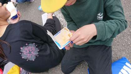 フライングディスクゴルフの後はみんなでアイスクリームをいただきます。みんなとても美味しそうです。