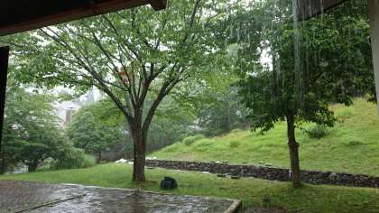 外で行うすべての行事を終えた後、どしゃ降りの雨になりました。みんなの活動が終わるのを待っていてくれたのですね。