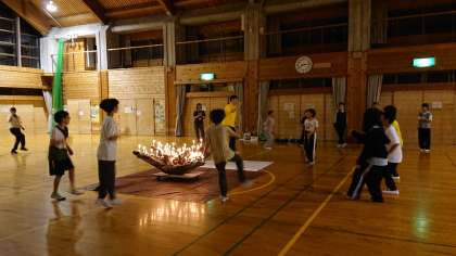 お誕生日の歌に合わせて、その月の人が美豆小学校からかけつけてくれた健太郎先生と同じ躍りを踊ります。アンコールがでて、みんな踊りまくっています。