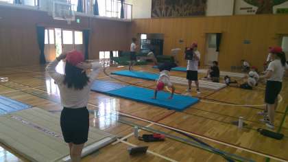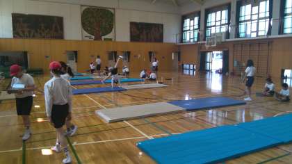 マット運動に取り組んでいます。技を練習するだけではなく、端末で動画を撮ったり、見本を見たりして技の理解を深めています。コツコツ練習することで力がついていきますので、積極的にチャレンジしてほしいです。