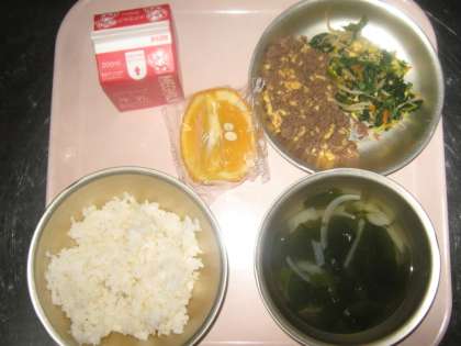 今日の給食は,『ビビンバ・牛乳・わかめスープ・甘夏みかん』です。