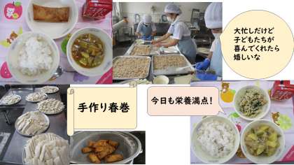 今日の献立は、麦ごはん・牛乳・じゃがいものそぼろ煮・切干大根の煮つけです。昨日のカレーあんかけごはんの具や春巻も大人気でしたが、子どもたちは、今日もたくさん食べていますよ。