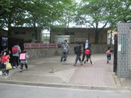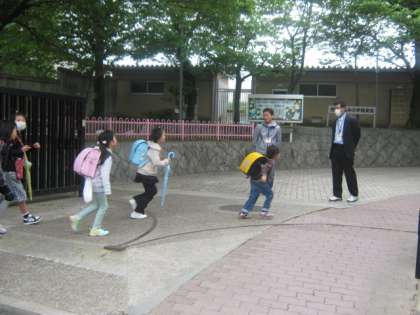 「おはようございます。」元気な挨拶が聞こえます。今日は,PTA会長さんも駆けつけてくださり,校長先生と一緒にみんなの登校を出迎えてもらいました。