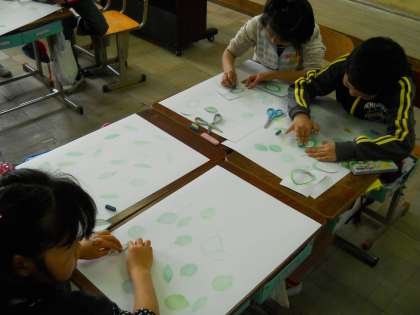 子どもたちは楽しみながら背景づくりを楽しんでいました。