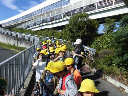 町探検に行きました。秋になって地域の様子はどのように変わったのか、地域に暮らす人たちは何をしているのか、どんな仕事をしている人がいるのかなど、たくさん発見がありました。