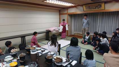 それぞれのお部屋では部屋のメンバーと協力してお布団を敷きます。夜は就寝時間もありますが、たくさんお話したり、ゲームしたりして楽しんで欲しいです。