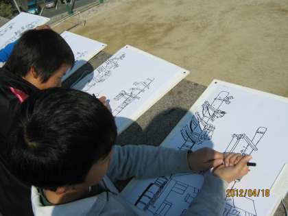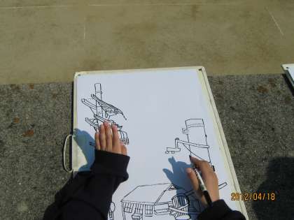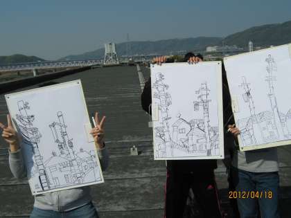 6年 5月 図画工作科 「電柱のある町」2