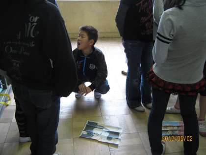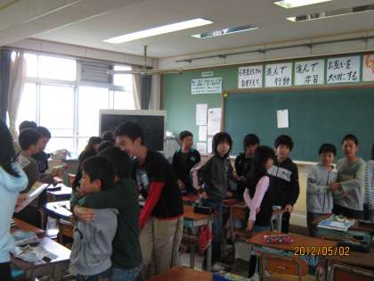 人物をパズルのピースのようにして,1人ずつにもたせました。完成すると…