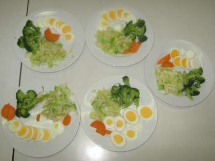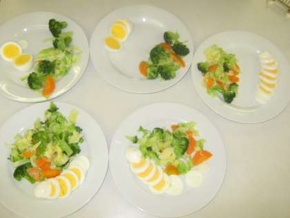 ゆで野菜のサラダ どのグループも工夫して盛り付けていました。