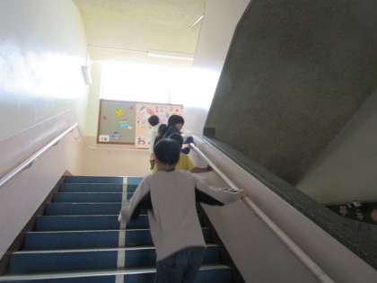 廊下や階段を歩く時の約束をしっかりと守って、静かに移動することができていました。