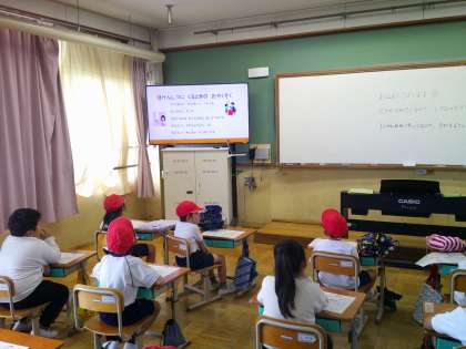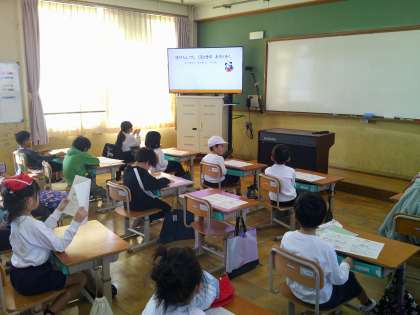 2年生の朝の「きらっとタイム」は、保健室についての勉強です。「ほけんしつってどんなとこ?」から「つかいかた」、「やくそく」、「学校医の先生の紹介など」動画をみて勉強しました。