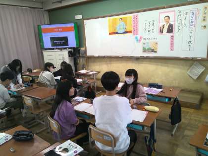 落語家の春風亭昇太さんの生き方から、自分の長所や短所について考えました。短所だと思っていたけれど、考え方によっては長所になることもあるということに気付いた子もいました。自分の良さをのばしていくために頑張りたいことなど、友だちと考えを交流し合っていました。