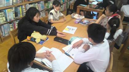 図書のオリエンテーションを行いました。図書館のルールやキーワードから関連する本を班で探す活動をしました。これからたくさんの本を読んでほしいと思います。
