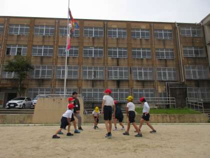 今日は雲が多かったですが、運動場で元気に体育科の学習を行うことができました。