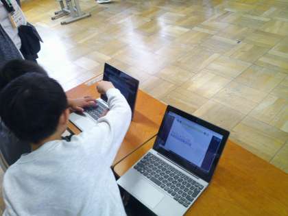 今日は1年生を案内するために学校たんけんのじゅんびをしました。ロイロノートを使って、教室やいろいろな部屋の紹介を書き込みました。これからも準備を進めていきます。