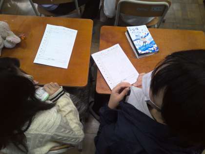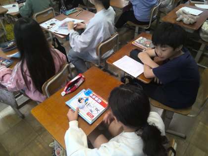 本の良さを伝え合い、より本に親しむために、これまでの朝読書で読んできた本を紹介し合いました。好きな場面や登場人物の行動を伝え合うことで、友だちが読んでいる本に興味をもち、これまでとは違うジャンルの本にも触れてほしいと思います。
