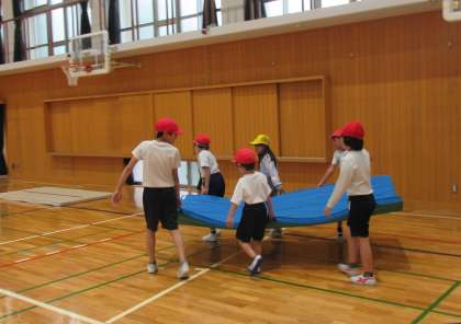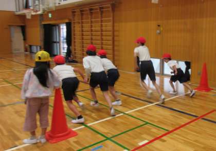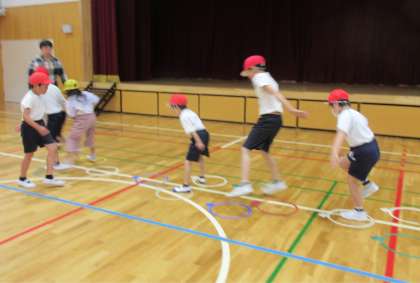 マットやケンケンパ、四足歩行やフラフープに取り組みました。