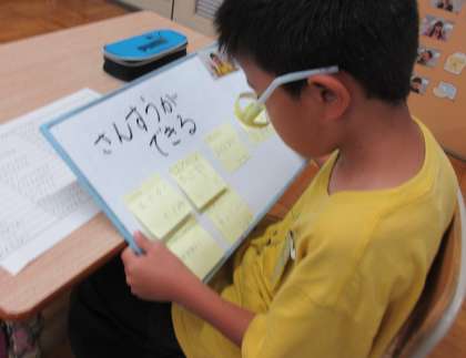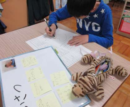 友だちからもらった自分の「いいところ」カードを読んで、とてもうれしそうな様子でした。