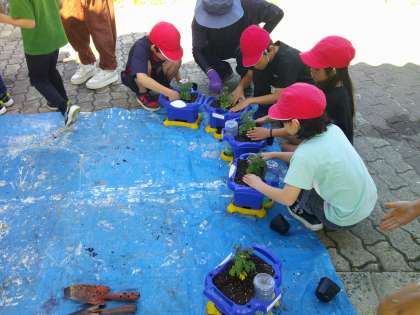 次はいよいよ苗を植えていきます。どれくらい深く掘り下げればいいのかな。これも今までの経験を踏まえて、自分でまた友達と相談して考えることが大切です。苗の大きさをみてしっかり考えて掘り下げていました。