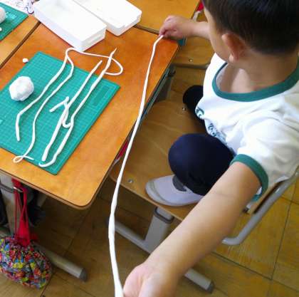 中にはこんなにながくねんどをのばしている子どももいました。のばしていけば、どんどんのびましたね。