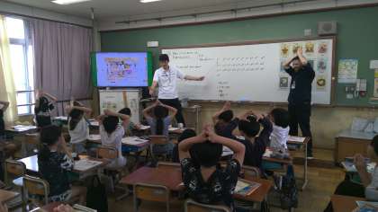 自分の名前のスペルと好きなものを伝える学習をしています。授業の最後には英語版たけのこにょっきゲームを行いました。「1st.2nd.3rd・・・」と一人ずつ人と被らないように順番に言っていくゲームですが、「「「1st!」」」と最初から一斉に言ったことでなかなかクリアできませんでした。楽しく活動することができて、大盛り上がりでした。
