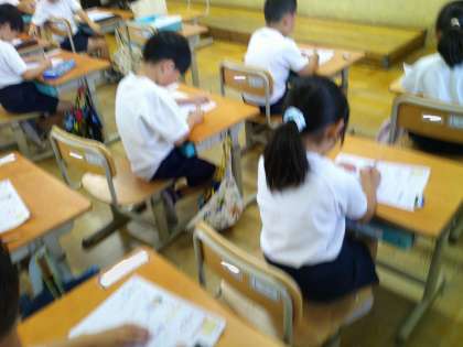 今日はひらがなの「も」の練習をしました。「も」は、曲がるところがあるので、鉛筆の運び方が難しいですね。そして最後にはらうところもあります。子どもたちはがんばって取り組んでいました。