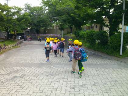 今日は低学年とつばさ学級の春の遠足の日です。天気予報では少し心配もしましたが、無事に出発しました。