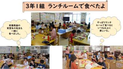 ランチルームで食べたよ