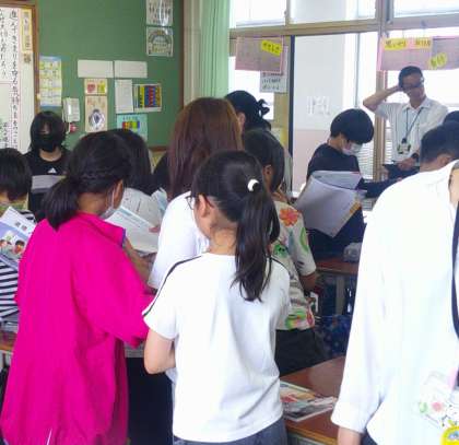 今日は道徳「ふくらんだリュックサック」の研究授業を行いました。校内の教員や道徳専門の大学の先生にもきていただき、よりよい授業づくりについて教えていただきました。授業では、役割演技や対話の時間も多くとるなどする中で、活発な意見交流の様子が見られました。
