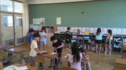 今日の国語では、「スイミー」の好きな場面について理由とともに伝え合う活動をしました。同じ場面を選んだ友だちでも、理由が違ったり、違う場面を選んだ理由を聞いたりして、考えを広げていました。