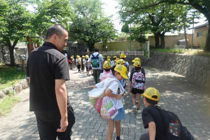 校長先生、教頭先生、河井先生に「いってきます〜!」と