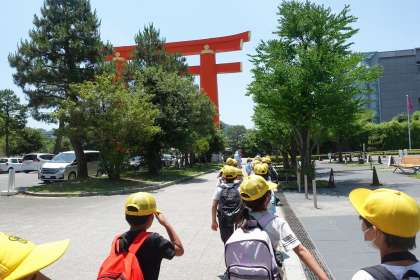 大きな鳥居をくぐって、図書館の横や美術館の横を通っていきました。