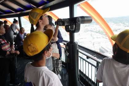 展望台にある双眼鏡をのぞいて、いろんなものを見ていました。