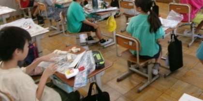のこぎりで切ってできた形を組み合わせると、何ができるのでしょうか。いろいろとアイデアを考えて取り組みました。