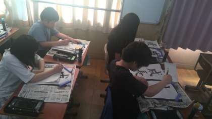 2学期初めの毛筆書写は「成長」という文字を書きました。文字のバランスや、はね、はらいなどに気をつけて丁寧に書くことができました。