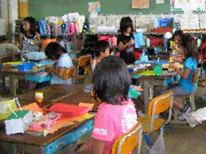 図工でストローをつかったおもちゃを作っています。箱に色画用紙を貼り,穴を開けてストローを通して組み立てていきます。授業の始めに3種類ほど動く仕組みの見本を見せたのですが,作業を進めるうちに自分なりの工夫を思いつく子が出てきます。その子のアイデアを見て,さらに工夫してどんどん楽しい作品ができてきました。