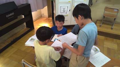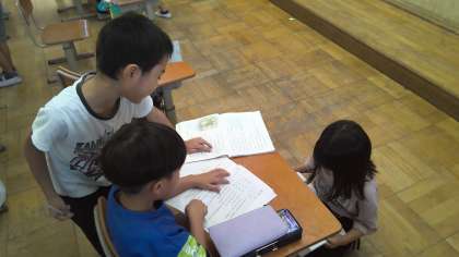 今日の国語では、「お手紙」の音読劇発表会に向けて練習を始めました。登場人物の気持ちを考えながら、グループで台詞練習をして、クラスの中で発表をしました。「スラスラ読めていていいと思います」「もう少し声を大きくした方がいいと思います」と互いにアドバイスをしあいながらステップアップしています。
