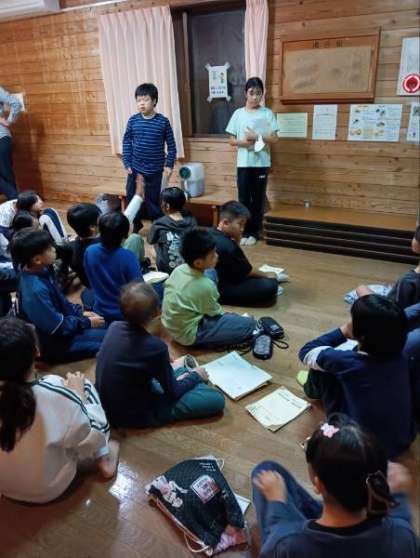 振り返りの時間です。冒険の森、カレーづくり、星もみられたこと。友だちと一緒だからできたこと、いろいろ振り返りました。今日のHPはこれで終了です。おやすみなさい。