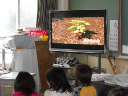 今日は雨だったので,教室でデジタルコンテンツを使って学習を進めました。