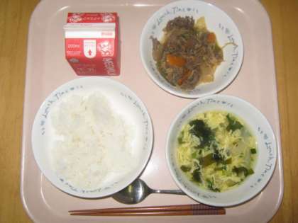 今日の給食は,『ごはん・牛乳・プルコギ・わかめスープ』です。