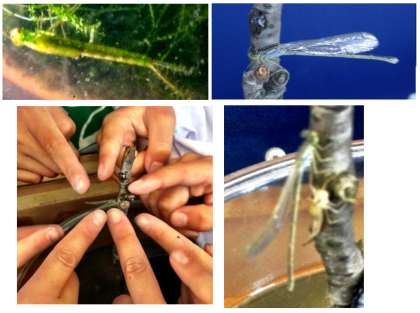 『先生、イトトンボのぬけがらがありましたよ』