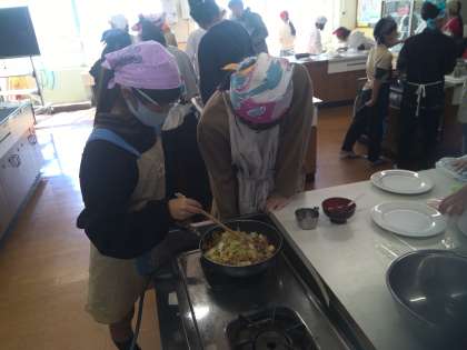 野菜炒めを作りました。食べやすい大きさに野菜を切ったり、しっかり火が通るまで炒めたりしました。