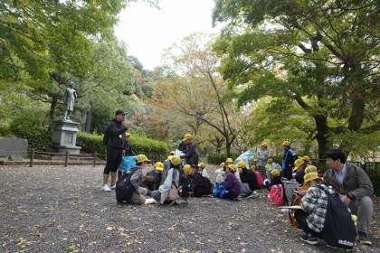 たくさん歩いたので、もう一度田辺朔朗像の前にやってきて休憩しました。
