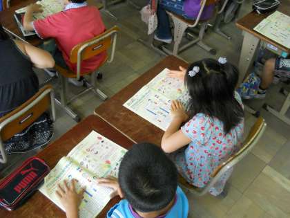 学習の中で子どもたちは,給食の時に放送で流れる三色分類の歌をヒントにして,いろいろな食品を赤・青・黄の三色に色分けしました。これからも意識的に三色バランスよく食事を取るように心がけてほしいと思います。