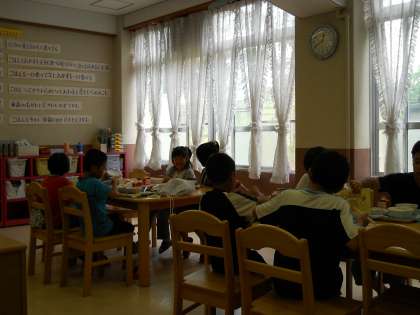 学習の後はみんなお待ちかねのランチルームでの給食です!