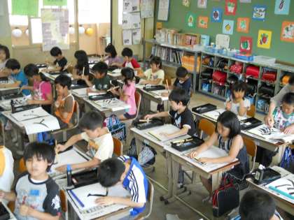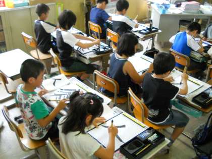 少しずつ毛筆に慣れてきましたが,やはり2画目の「右はらい」は難しいようで,どの子も苦労している様子でした。