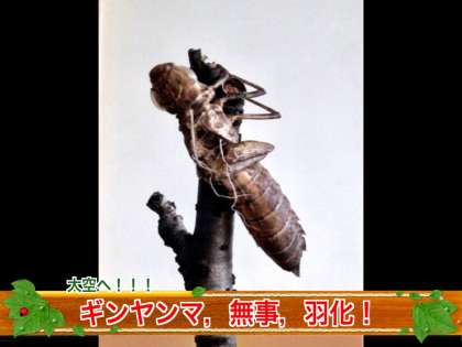 休日あけの今日,無事ギンヤンマのヤゴは,羽化したようです!