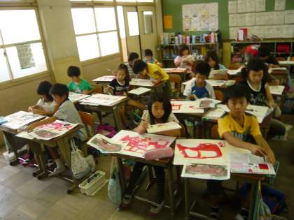 消防車や救急車の写真を見ながら,色塗りを行いました。
