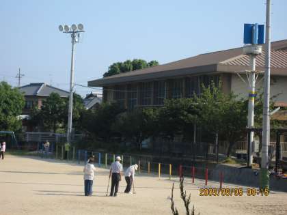 おはようございます。今日は土曜学習があります。5・6年生は,地域の方による理科実験学習です。今日はどんな実験でしょうか?運動場では,早朝からグランドゴルフをされています。
