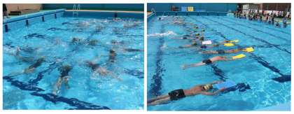 今日は,複数人でのふし浮きをしました。水上からは,シンクロナイズド・スイミングのようにきれいに見えした。
